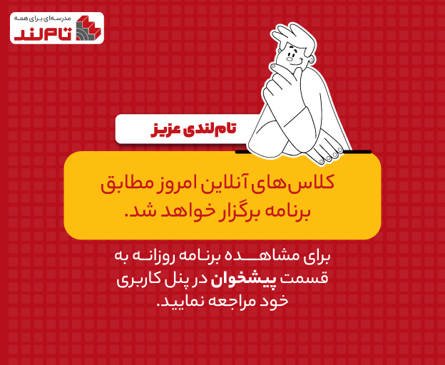 مشاوران و پشتیبانهای تاملند به صورت آنلاین و از 8 صبح تا 11 شب، همراه با کلاسها کنار شما هستند و برای حل مشکلاتتون بهتون کمک میکنند.